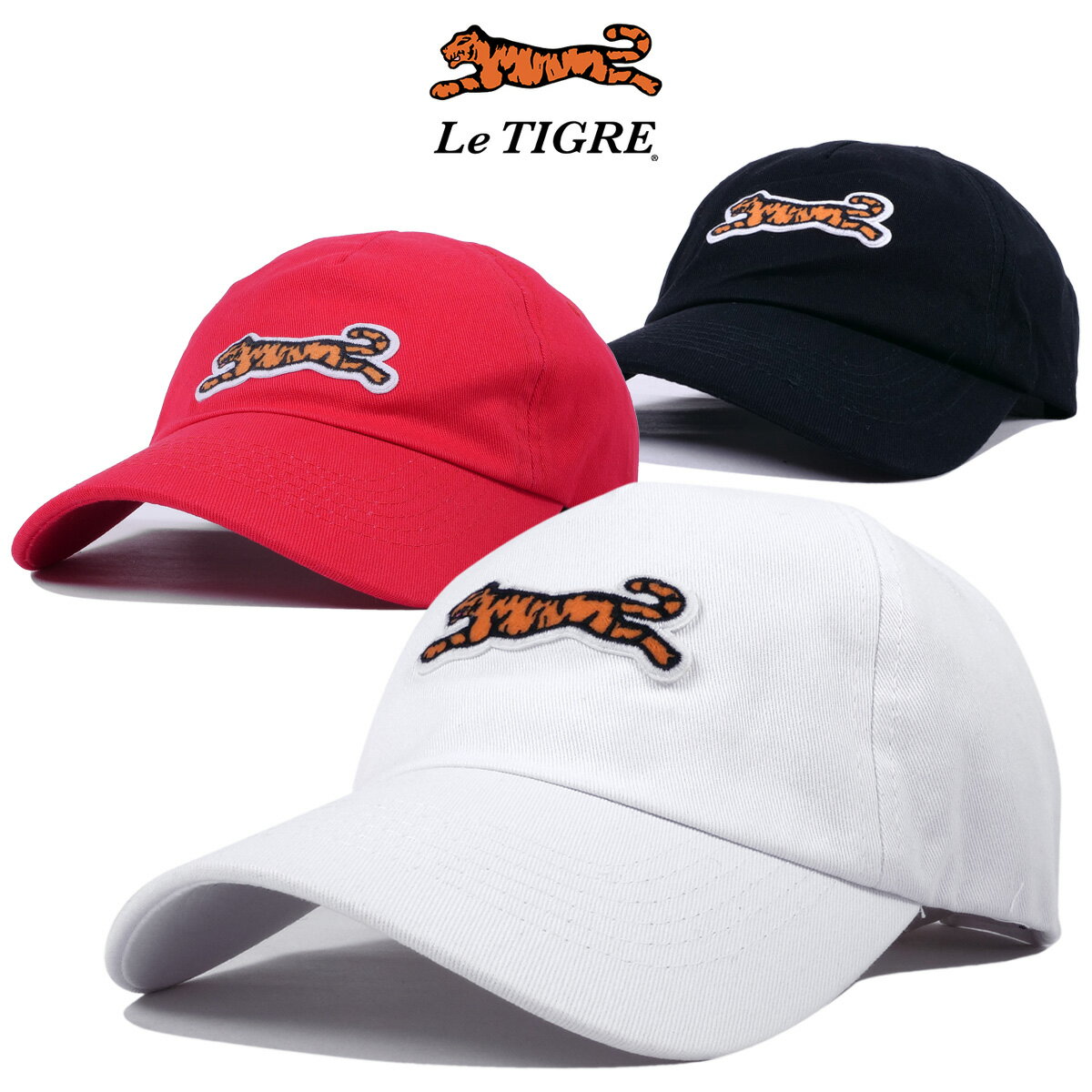 【セール】 ルティグレ レディース 女性 メンズ 男性 帽子 ローキャップ シンプル トレンド 虎 刺繍ワッペン おしゃれ かわいい 夏 女子 人気 お揃い Le Tigre LT-62 カラー(黒 / 白 / 赤)