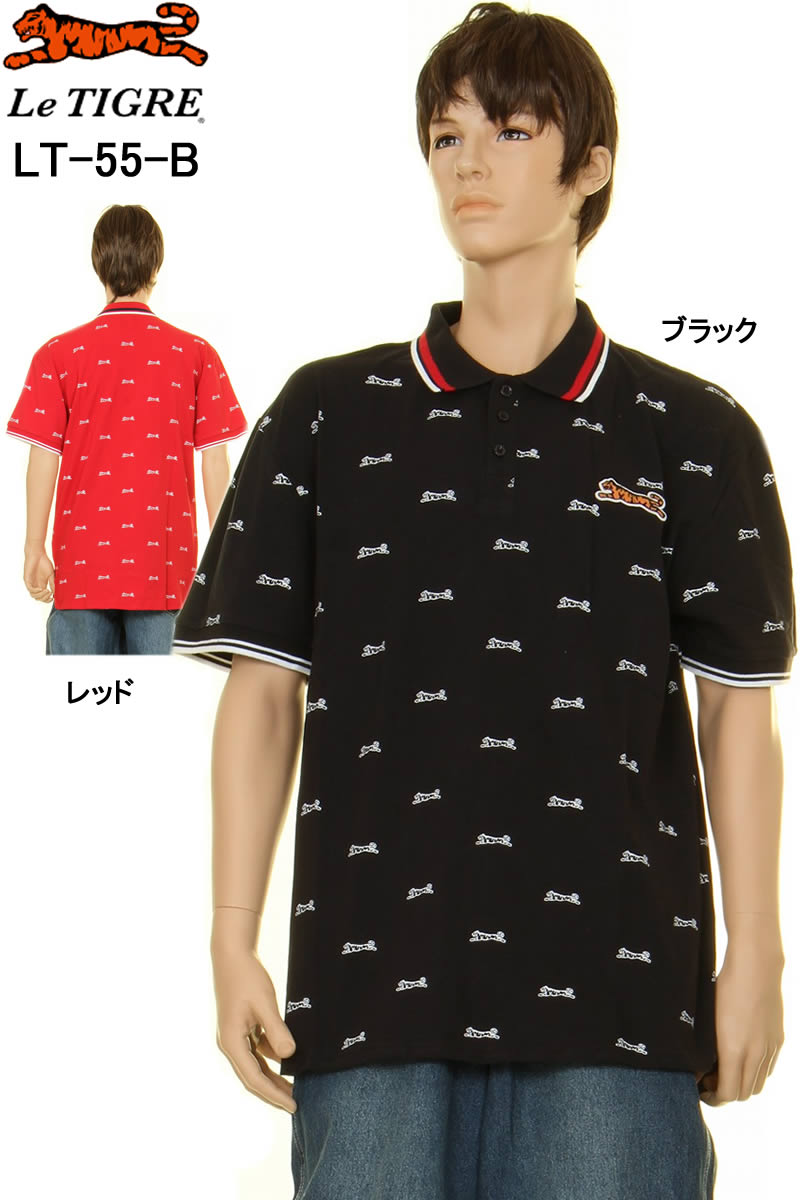 LE TIGRE LT-55-R ルティグレ ポロシャツ 半袖 総柄 タイガーロゴ メンズポロシャツ ダンスウェア ファッション ブランド カジュアル【ルティグレ プリント総柄ポロシャツ メンズポロ 半袖ポロシャツ ダンスウエアー 襟付き カジュアル 新品】