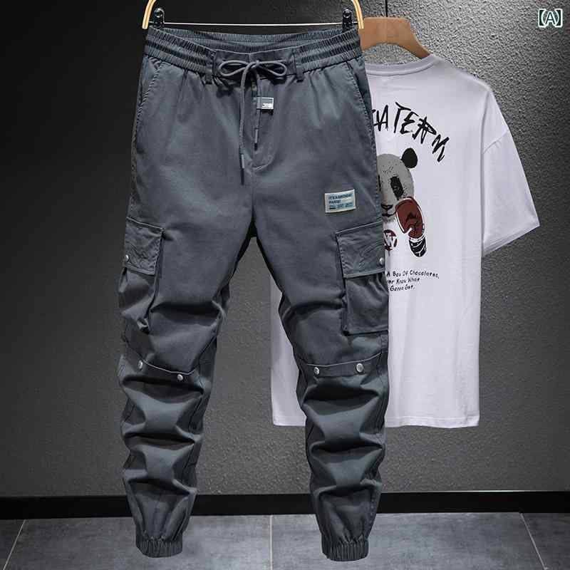 メンズ 男性用 ファッション オシャレ シンプル 大人 かっこいい ストリート ヒップホップ HipHop 立体 ワークウェア大きい ポケット カジュアル パンツ 春 ルーズ レギンス パンツ 綿 コットン ストレッチ パンツ