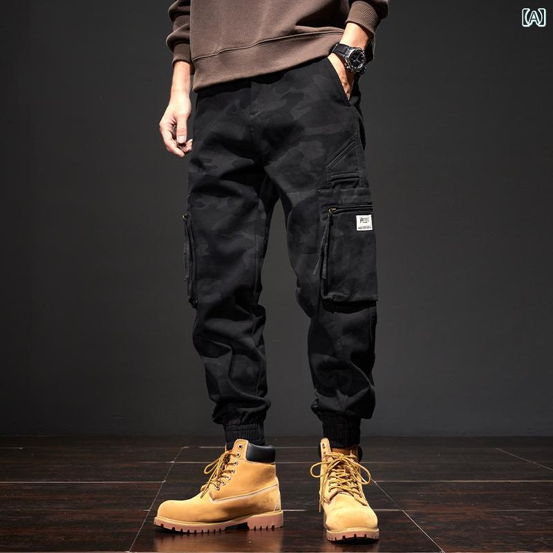 オーバー オール メンズ 秋 カジュアル マルチ ポケット ストレッチ ルーズ レギンス