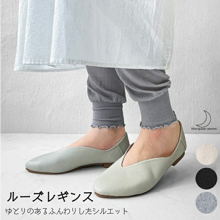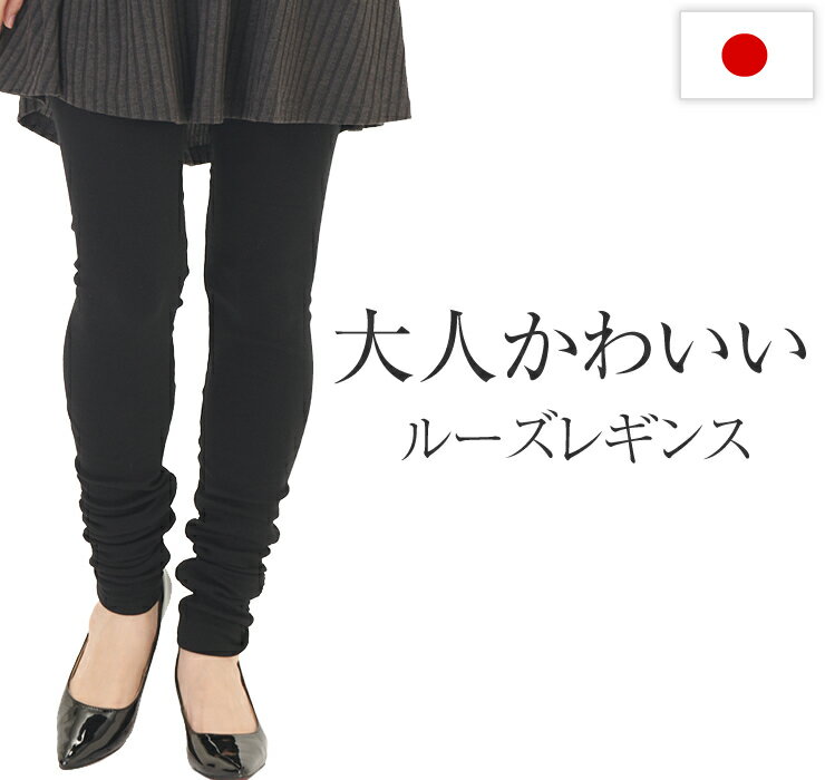 大人かわいい ルーズレギンス 日本製 くしゅくしゅレギンス シャーリングレギンス 綿100% コットン 10分丈 秋 秋 冬 黒レギンス ブラック 着こなし 女性 レディース かわいい 国産 股上の深い 女性用 着痩せ 締め付けない カジュアル 着痩せ
