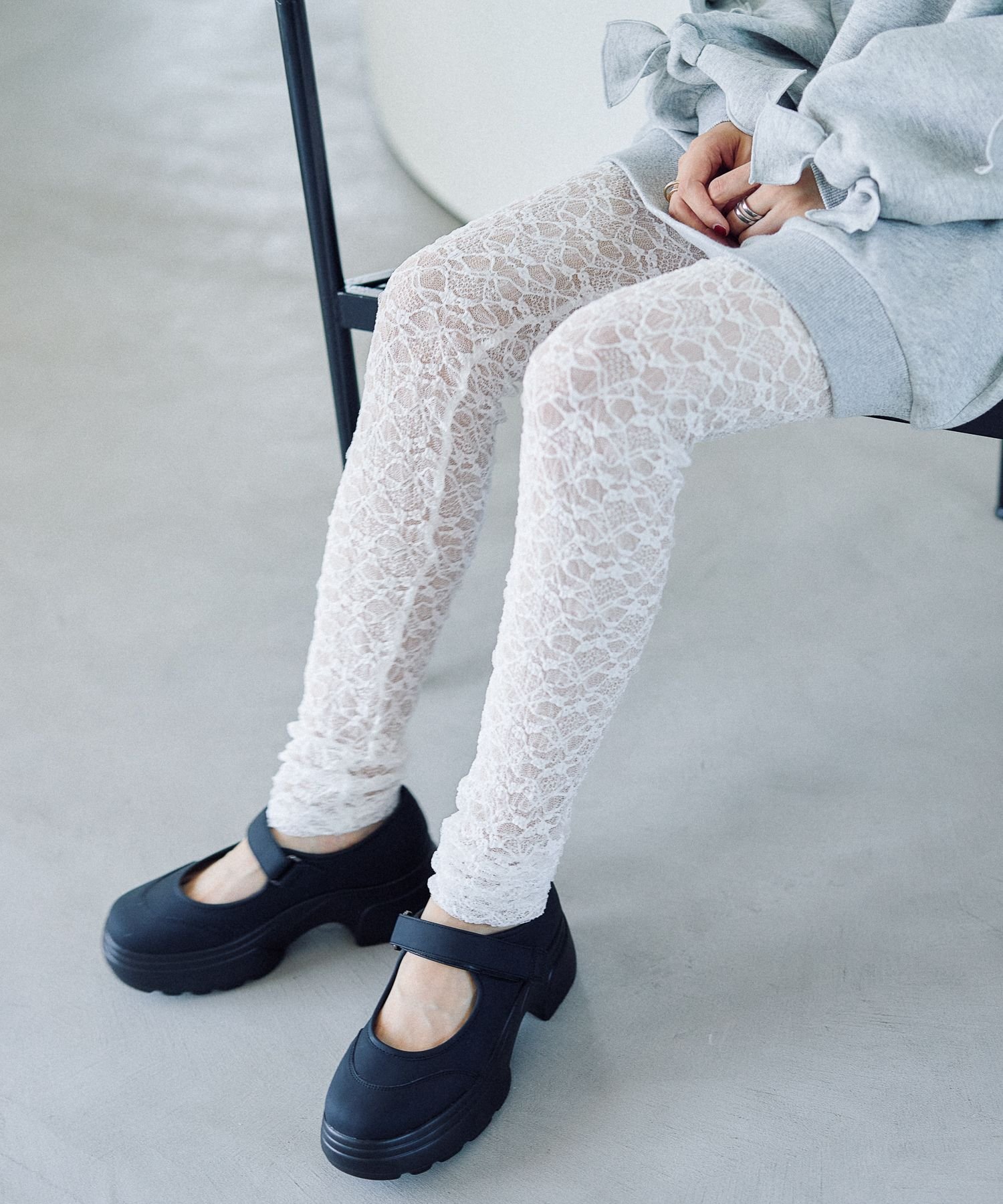 【SALE/50%OFF】LEPSIM レースルーズレギンス レプシィム 靴下・レッグウェア レギンス・スパッツ ホワイト ブラック