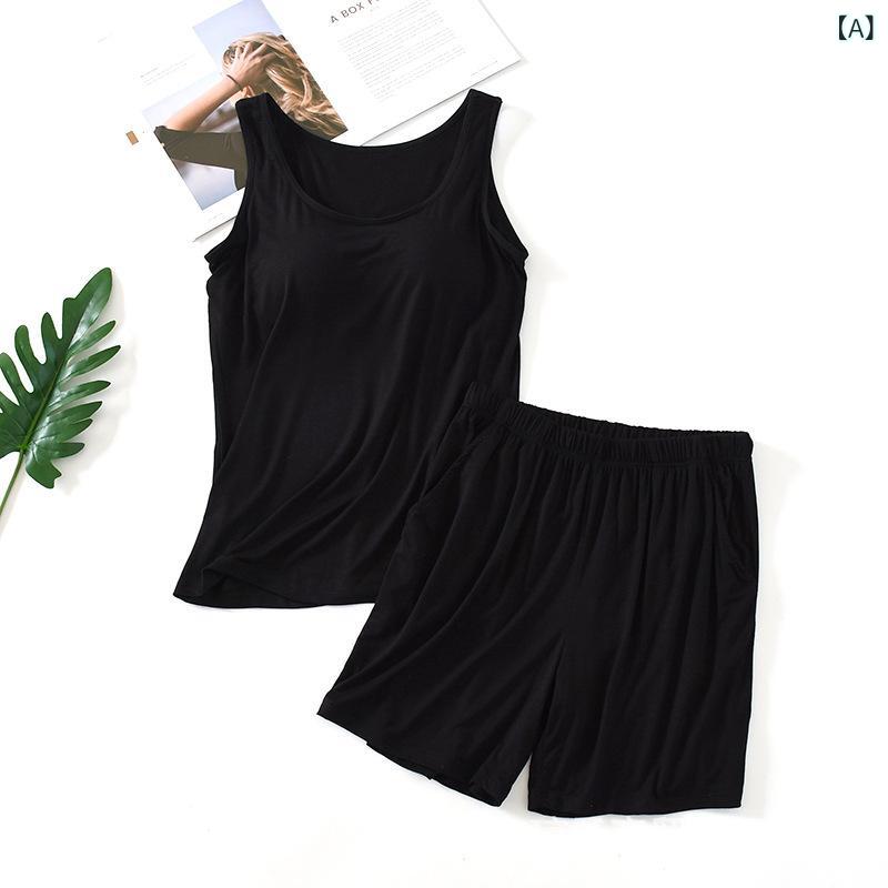 ルームウェア レディース 上下セット カップ付き キャミソール ショートパンツ 再生繊維 モダール 薄手 接触冷感 通気性 伸縮性 リラックス 部屋着 春夏 ブラック 麻グレー ピンク系 ブルー系 カーキ ダークグレー