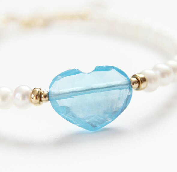 1点もの スイス ブルートパーズ パール ブレスレット(ハートカット)14KGF 天然石 アクセサリー ゴールド フィルド ジュエリー ハンドメイド 淡水真珠 お守り ブレス 高品質 レアカット お守りブレス