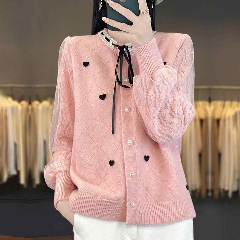 カーディガン レディース かわいい 春秋 ニット レース 切り替え インナー トップス スタイリッシュ 軽やか レイヤード コーデ 日常使い 柔らかい 着心地 レイヤリング アイテム 女性向け セーター 風