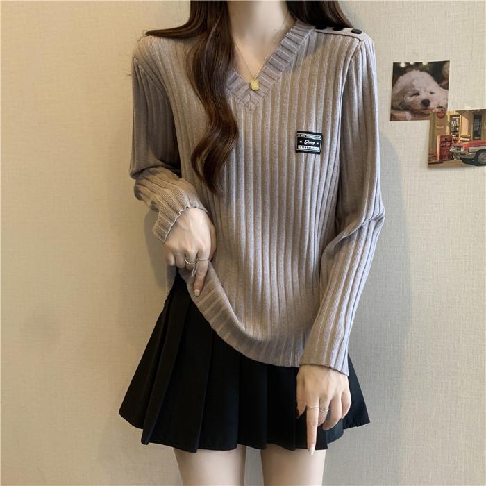 ニット シンプル 長袖 ファッション カワイイ 大きいサイズ 大人カワイイ 秋冬 カバー セーター ゆったり スリム 服 レディース Vネック シャツ レイヤリング アイテム オシャレ コーデ