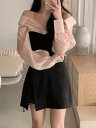 フェイク レイヤード サテンタック ワンピース 女性 レディース ドレス オケージョン セレモニー パーティー 結婚式 二次会 華やか エレガント ミディ丈 異素材 シアー 透け感 上品 ドレッシー 重ね着