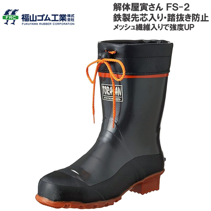 福山ゴム 解体屋寅さん 長靴 鉄製先芯入り FS-2 メンズ ワーク 作業 強度UP 踏み抜き防止板 耐久性 2E レインブーツ