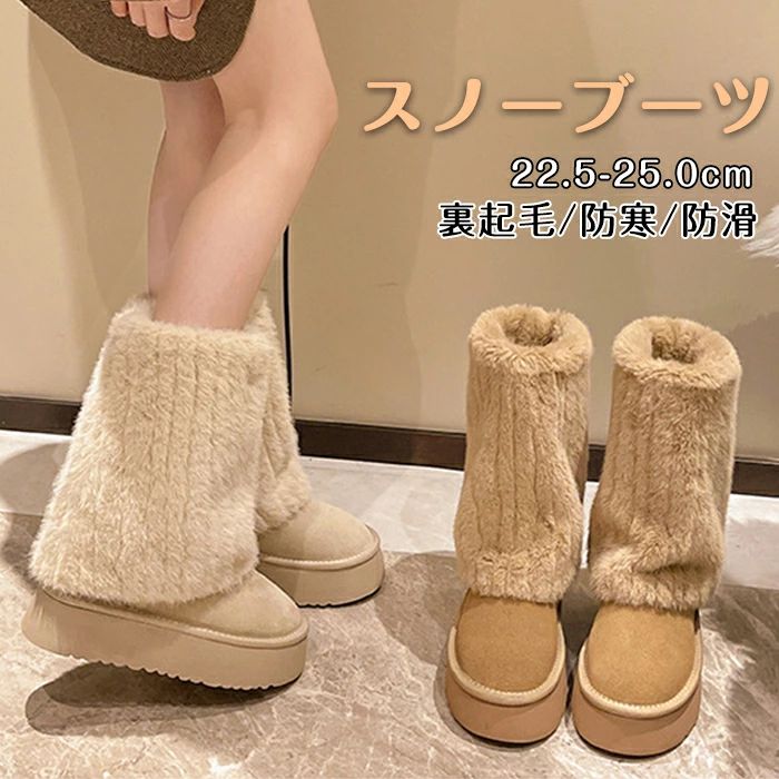 【10日限定10%OFFクーポン】ムートンブーツ ロングブーツ 厚底 4cm 身長アップ レディース 裏ボア 裏起毛 もこもこ 防寒 保温 軽量 あったか 滑り止め おしゃれ スノーシューズ 暖かい カジュアル 歩きやすい 春 秋 冬用 フラットシューズ 長靴 雪靴 疲れない 旅行 レジャー