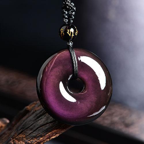 ネックレス メンズ レディース 黒曜石 お守り ペンダント 大玉 レインボーオブシディアン カップル アクセサリー 開運 ギフト