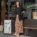 エーシーデザインバイアルファキュービック A/C DESIGN BY ALPHA CUBIC レオパードプリントスカート (ブラウン)