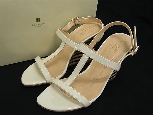 ■美品■ kate spade ケイトスペード パテントレザー ウェッジソール サンダル 靴 シューズ レディース アイボリー系 DJ6191