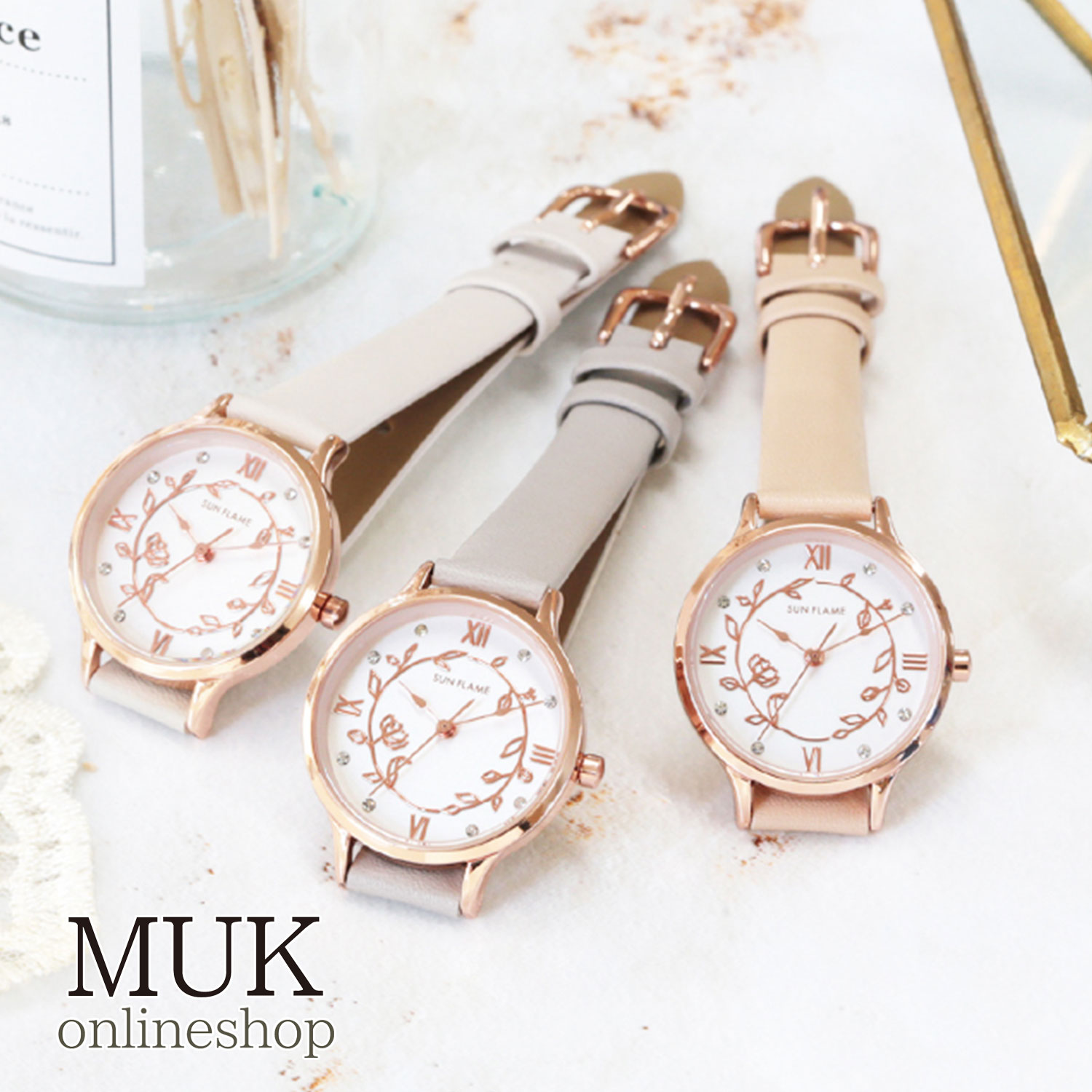 時計 レザーウォッチ レザー 腕時計 くすみカラー アースカラー リーフ ファッション ファッションウォッチ ストーン シンプル 日本製 made in japan サンフレイム SUNFLAME muk プレゼント ギフト クリスマスプレゼント