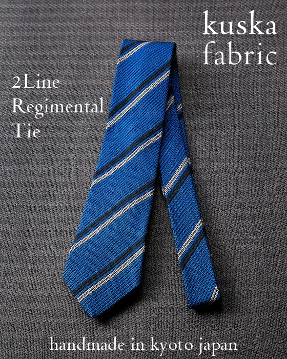 kuska クスカ 2ラインレジメンタルタイ 丹後ブルー ネクタイ ブルー 青 国産 日本製 シルク 絹 手織り 職人 ギフト 贈答品 京都 丹後 ブランド 高級 ビジネス 父の日 成人式 ストライプ