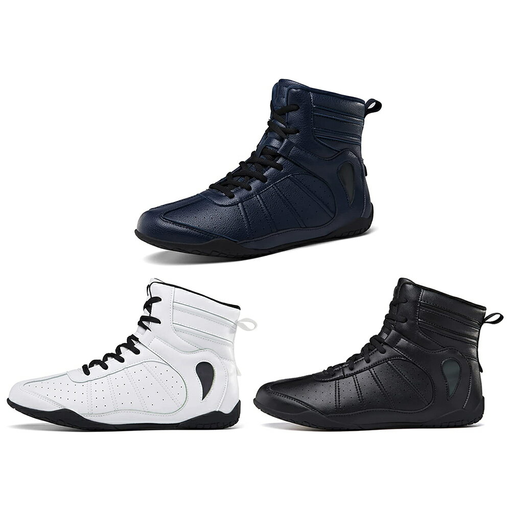 ボクシングシューズ ジュニア レスリングシューズ メンズ プロ レディース 幅広 ハイカット レーストレーニング 重量挙げ MMA靴 足首ガード ジム 練習用 専門男女トレーニングシューズ ゴム底 戦闘訓練靴 通気 軽量 男女兼用 22.5cm-28.0cm 室内トレーニングシューズのラバーソールは、試合でもスパーリング相手でも自由に動け、耐摩耗性と耐久性に優れています。 【通気性のある熱除去】アッパーは通気性のあるメッシュ素材と皮革で作られており、軽くて快適で通気性があります。緻密なラインワークとしっかりとした接着技術により、靴は運動時に優れた性能を発揮し、丈夫で耐久性があります。ボクシングシューズ用のシューズとして、軽量で足元に負担かけず室内運動は一層楽しく展開でき。柔らかいのパッド入り、足と足首を非常にうまく包み込み、ぴったりフィット。レスリングの靴はショックを吸収する素晴らしい仕事をしています。適した季節:夏、冬、春、秋。【高品質のパフォーマンス】ボクシングスニーカーは柔軟なパフォーマンスを提供し、軽量素材を使用し、靴全体が軽くて重くなく、機敏なパフォーマンスを提供し、拘束感なく足を履いて、簡単で自由です。高品質のファッション要素のつなぎ合わせを採用して、糸の引き廻しが厳密で、糸の引き廻しを下げて縫って、縫い目がきちんとしていて、丈夫でしっかりしている。この商品は、耐久性と機能性を両立した、優れたジュニア用レスリングシューズです。【ボクシングシューズソール】室内トレーニングシューズのラバーソールは、試合でもスパーリング相手でも自由に動け、耐摩耗性と耐久性に優れています。滑りにくい質感のラバーソールが十分なグリップ力とトラクションを提供し、滑りやつまずきのリスクを軽減します。超薄型滑り止めソールにより、脚の強度を最適化し、安全・快適な運動を可能にし、疲労感を効果的に軽減します。このメンズ用戦闘訓練靴はリングの上でよく滑って動くようにしてくれます。【高い安全性】足首の保護、足をしっかりと包み込み、多層保護により怪我を防ぎ、怪我や関節の負担の潜在的なリスクを最小限に抑えます、つま先部分には保護設計を採用。革と厚いゴム製のつま先を包み込んで、足をしっかりと保護、ケガを防。中底部立体成形、U型構造が踵を包囲し、運動中の転倒を防止し、足首を傷害から保護する。【適用スポーツ】マルチレンジスポーツに適したフィットネスシューズで、ボクシング、レスリング、ウェイトリフティング、健康マッサージ、フィットネス機器、格闘技、射撃スポーツ、エクササイズなどに最適です。競技中に必要な快適さとサポートを提供する、ムエタイ、MMA、レスリングシューズです、武道護身術、会場アミューズメント機器。甲が高い場合や足が広い場合はワンサイズ大きい方をお選びください。 5