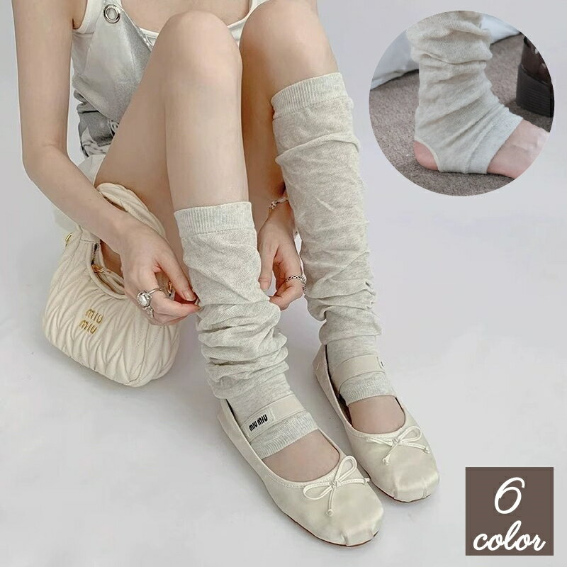 送料無料 レッグウォーマー レディース 女性 レッグウェア レッグカバー 靴下 指無し 穴あき かかと ロング丈 シンプル 薄手 くしゅくしゅ 冷え防止 冷房対策 おしゃれ 可愛い