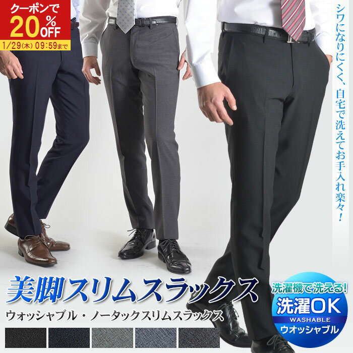 【20%OFFで2,384円】 スラックス スリム メンズ ノータック ローライズ ウォッシャブル オールシーズン 洗える パンツ ビジネス オシャレ 安い 人気 美脚 春夏 秋冬