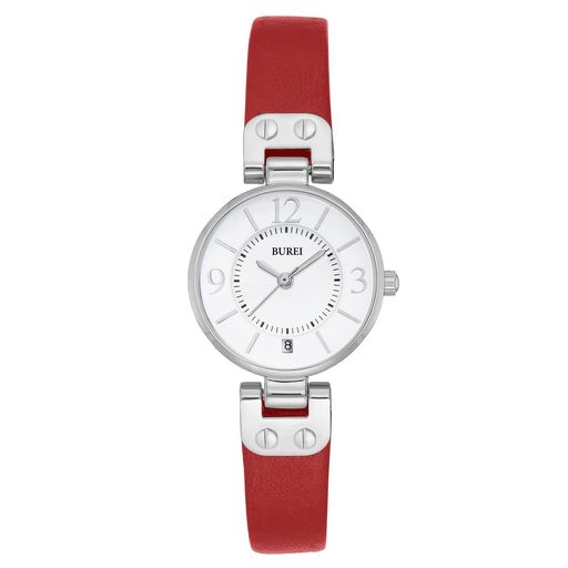 BUREI腕時計レディースアナログクオーツおしゃれ防水日付シルバー見やすい文字盤レッド革ベルトシンプルかわいい女性時計軽いビジネスカジュアル通勤通学記念日受験誕生日お祝いプレ…