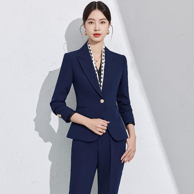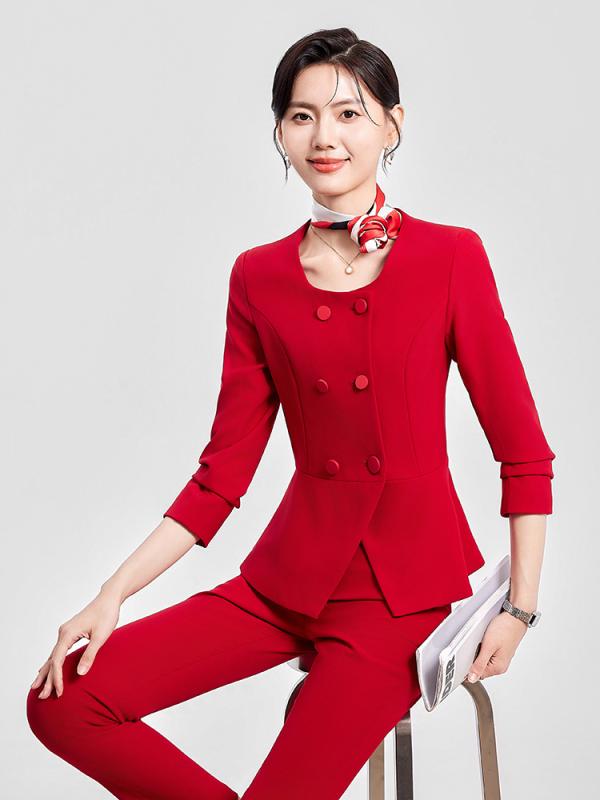 スーツ レディース 女性用 ビジネス フォーマル オフィス 事務服 ユニフォーム 高級感 上品 長袖 ロングパンツ 宝飾店 ホテル 受付 マネージャー ポリエステル ビスコース レッド ブルー ブラック