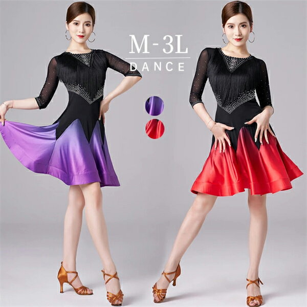 社交ダンス ラテンドレス ワンピース ラテン衣装 チャチャチャ ダンス衣装 練習服 スタンダード ラテンダンス ラテン競技着 練習着 ダンス 演出 ダンスウエア ダンス発表会 団体 サルサダンス 競技用ドレス ステージ 演出服 パープル レッド