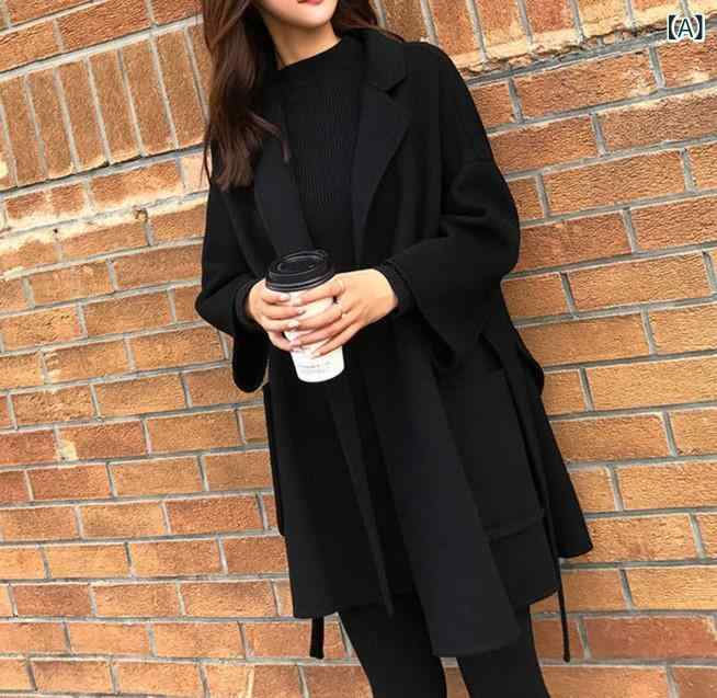 2025 年 秋 ミドル 丈 ウール コート 薄手 レディースレースアップ 大きい サイズ ゆったり レディースウールコート