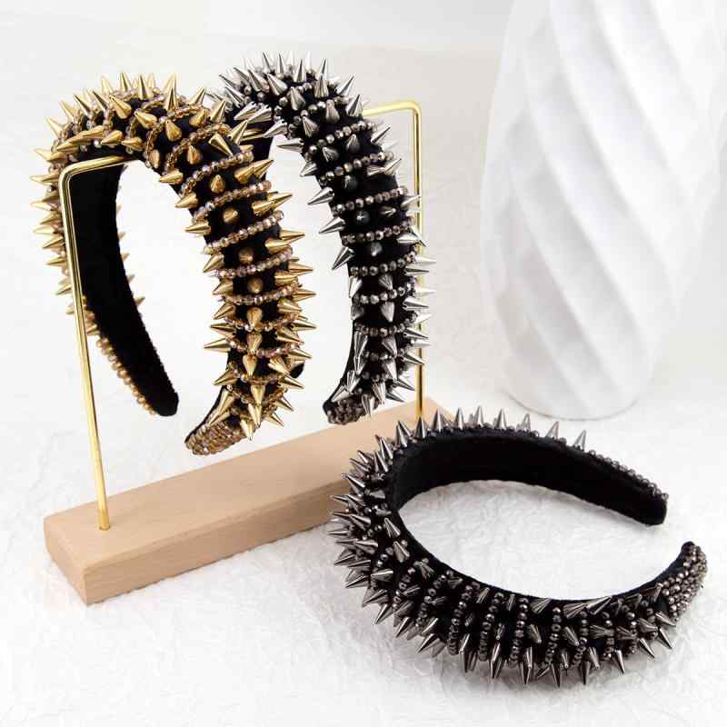 3ヘアバンド レディース 幅広 スポンジ スタッズ ビーズ プラスチック製 ヘアアクセサリー ゴールド シルバー ブラック 普段使い パーティー