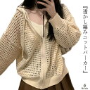 【送料無料】レディース ニットパーカー パーカー ニット トップス 長袖 春秋 重ね着 フード付き 穴あき 肌見せ レイヤード ベージュ 透かし