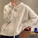 【送料無料】レディース ニット パーカー 女性 フード付き 長袖 ジップアップ ファスナー トップス 前開き カジュアル お洒落 かわいい 普段