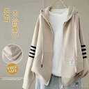 【送料無料】パーカー レディース ニットパーカー 秋 冬 春 フード 長袖 可愛い ボーダー シンプル きれいめ レディースパーカー ノーマル丈 前開き ベージュ