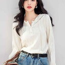 カットソー レディース ニットパーカー 長袖 Vネック インナー トップス コットン 伸縮性 無地 おしゃれ エレガント 通勤 オフィス 普段使い 春夏