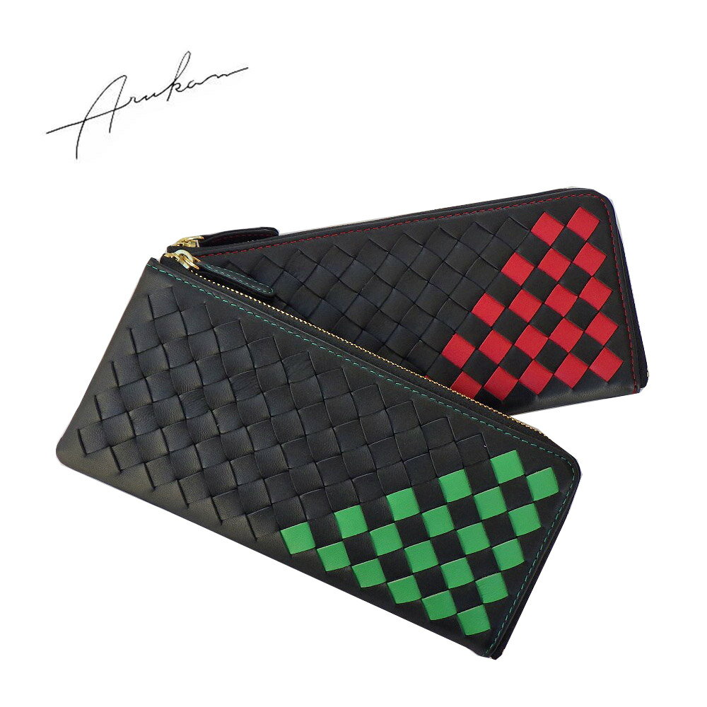 素 材:ラム革 サイズ:9.5×20×1.5cm 仕 様: L字ファスナー長財布(小銭入れあり) 後面:片マチファスナーポケット×1 内部:札入れ2分割・小銭入れ・差込ポケット×2・カード入れ×14 店長より一言: ソフトタッチが魅力の定番ラム革メッシュで仕上げたarukan(アルカン)『ラムクロス』シリーズです。 カラーコンビが好評です。 人気のL字ファスナー長財布、後面の片マチファスナーポケットも便利で好評です。 取扱いカラー:クロ/アカ(2141)・クロ/グリーン(2161)