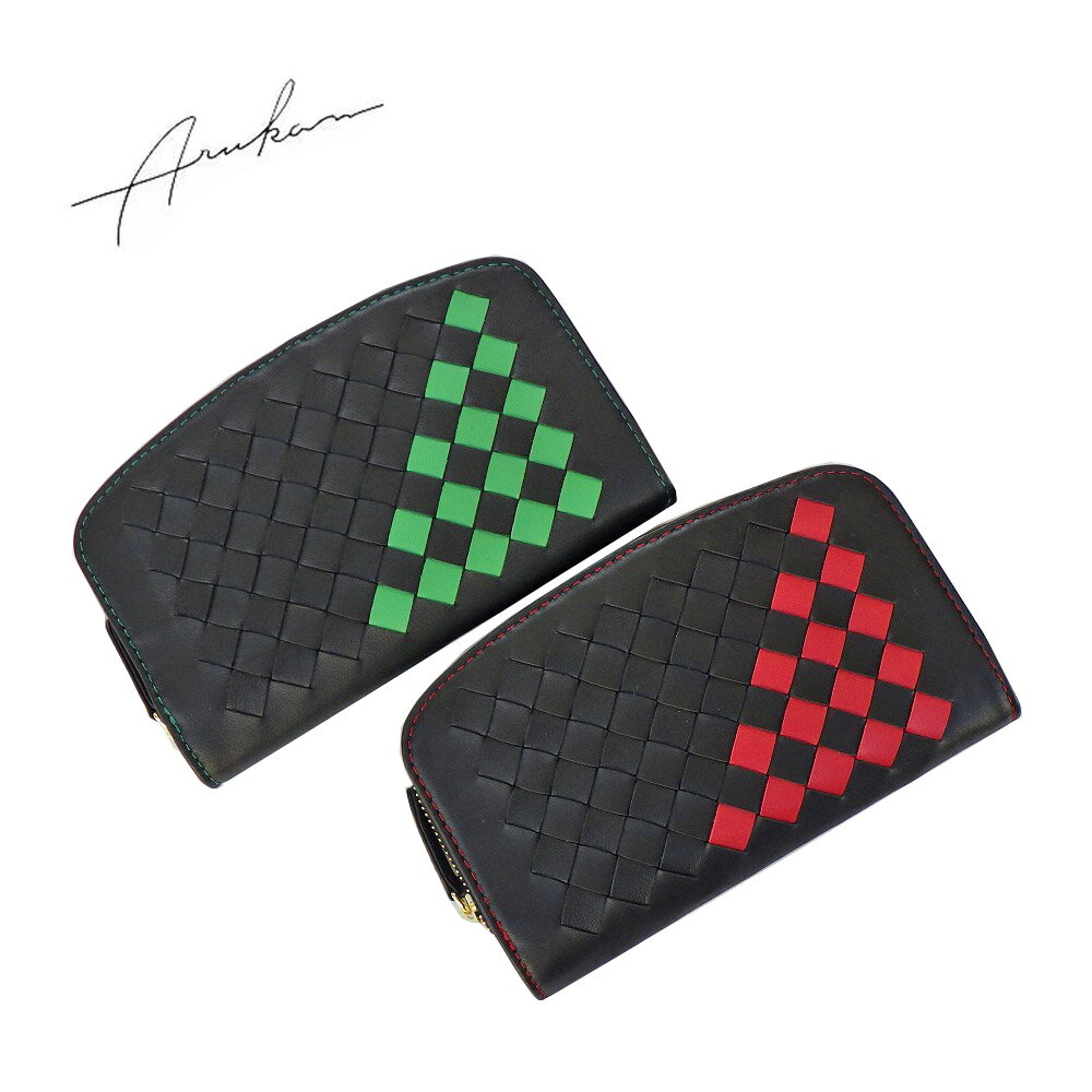 素 材:ラム革 サイズ:10×16×2.5cm 仕 様: ラウンド二つ折り財布(小銭入れあり) ラウンドファスナー小銭入れ(内部=2分割、アテポケット×2) 札入れ2分割 差込ポケット×4・カード入れ×8 店長より一言: ソフトタッチが魅力の定番ラム革メッシュで仕上げたarukan(アルカン)『ラムクロス』シリーズです。 カラーコンビが好評です。 このお財布は、収納しやすいポケット仕様と見やすいカードポケットが好評です。 取扱いカラー:クロ/グリーン(2161)・クロ/アカ(2141)