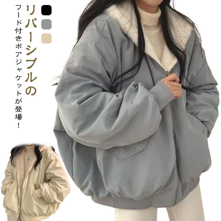 カジュアル リラックス アウター 大きいサイズ 長袖 レディース リバーシブル ジャケット ボア 裏ボア ボアブルゾン フード付き