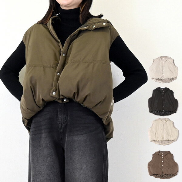 【取り寄せ対応】中綿ベスト ベスト フーディ 無地 前開き アウター レディース エクリュ グレージュ オリーブ ブラック
