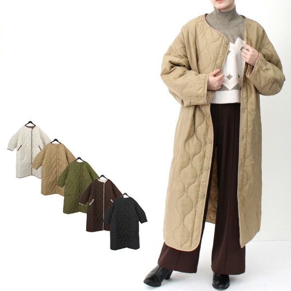 キルティングジャケット コート ロング丈 秋 冬 無地 ライナー 中綿 リップストップ アウター レディース エクリュ ベージュ カーキ ブラウン ブラック
