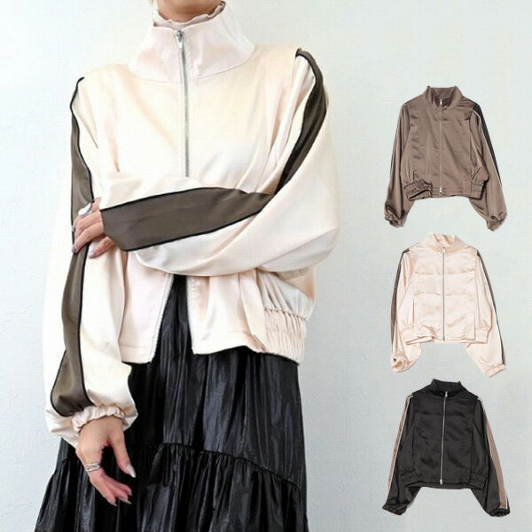 ブルゾン トラックジャケット ライン サテン アウター レディース エクリュ グレージュ ブラック