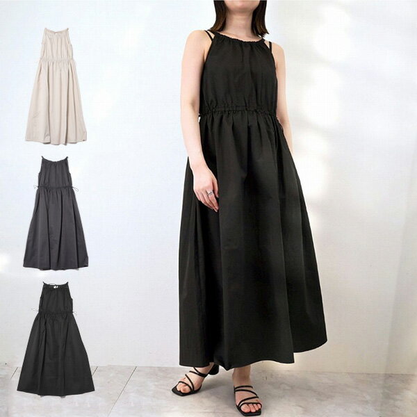 ワンピース ロングワンピース ノースリーブ ドローストリング 無地 レディース エクリュ チャコールグレー ブラック