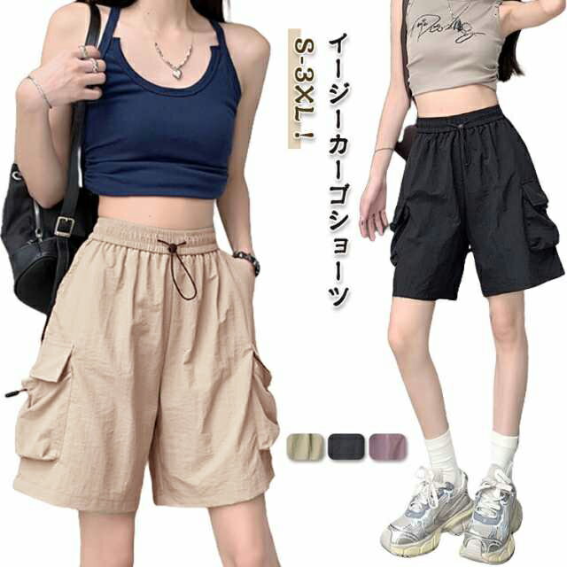 【店長おすすめ】パンツ ショートパンツ カーゴパンツ レディース 夏 イージーパンツ カーゴ ワイドパンツ ウエストゴム ボトムス ゆったり 大きいサイズ カジュアル お洒落 キレイめ 普段着 春 秋 新作 体型カバー 春夏 20代 30代 40代