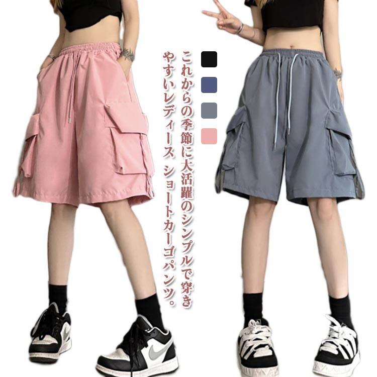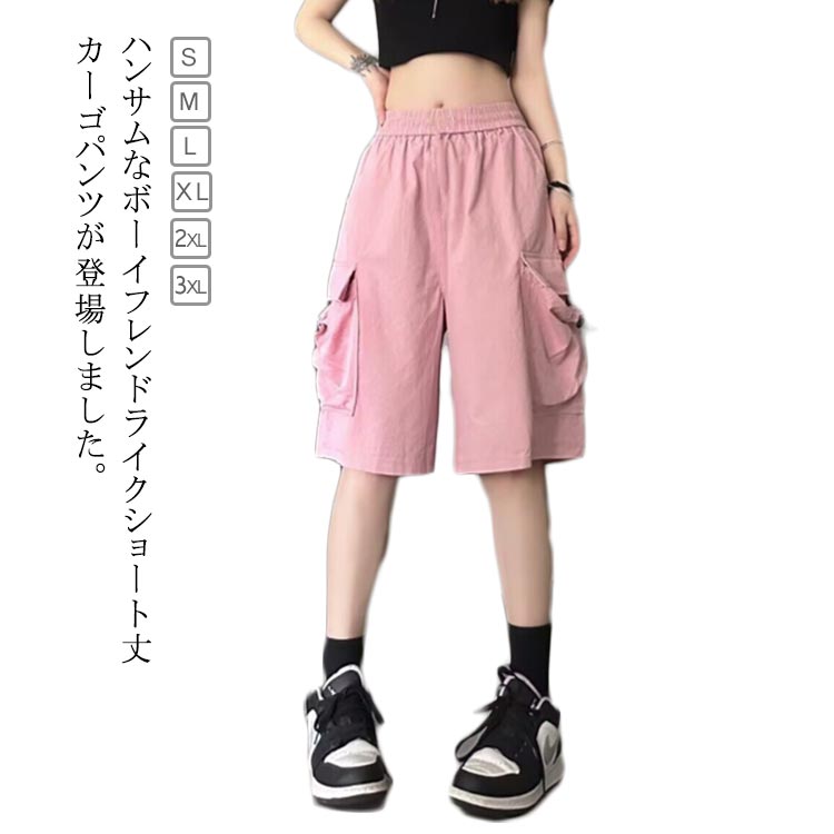 カーゴパンツ ショートパンツ ハーフパンツ 膝上 レディース 速乾 ウェストゴム ボトムス カジュアル パンツ 半ズボン 短パン イージーパンツ 夏
