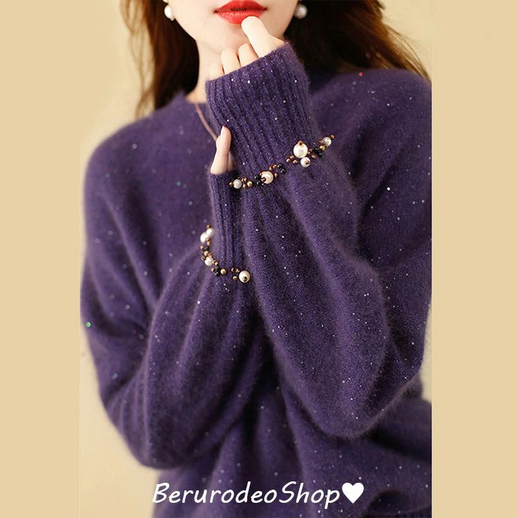 ニットセーター レディース パープル ブルー オシャレ セーター 30代 40代 スパンコール ビーズ キレイめ 長袖セーター ニット 春秋冬 プールオーバー ニットトップス 無地 送料無料