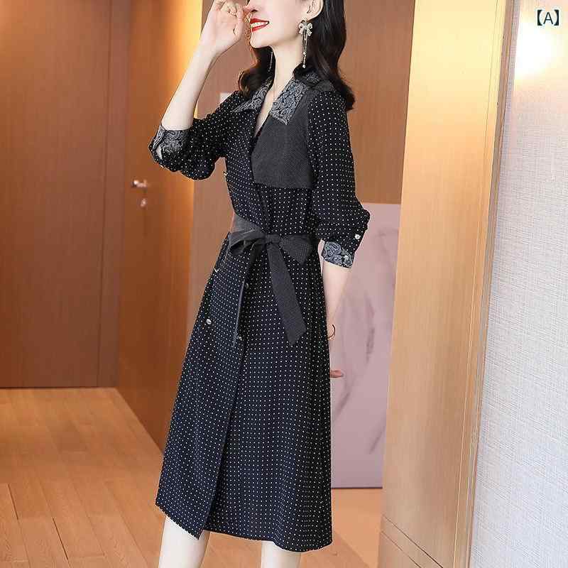 計算された美シルエット ロングスカート シャツワンピ スリム レトロ ドット ワンピース (T)