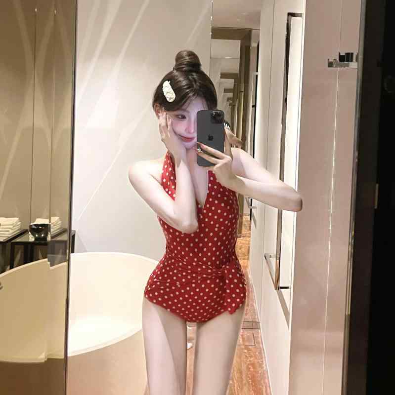 ワンピース水着 レディース スイムウェア 高級感 セクシー レトロ ドット柄 体型カバー 着痩せ効果 バストアップ ワイヤー入り パッド付き ホールド感 速乾 高伸縮性 バックシャン ビーチ リゾート プール バカンス