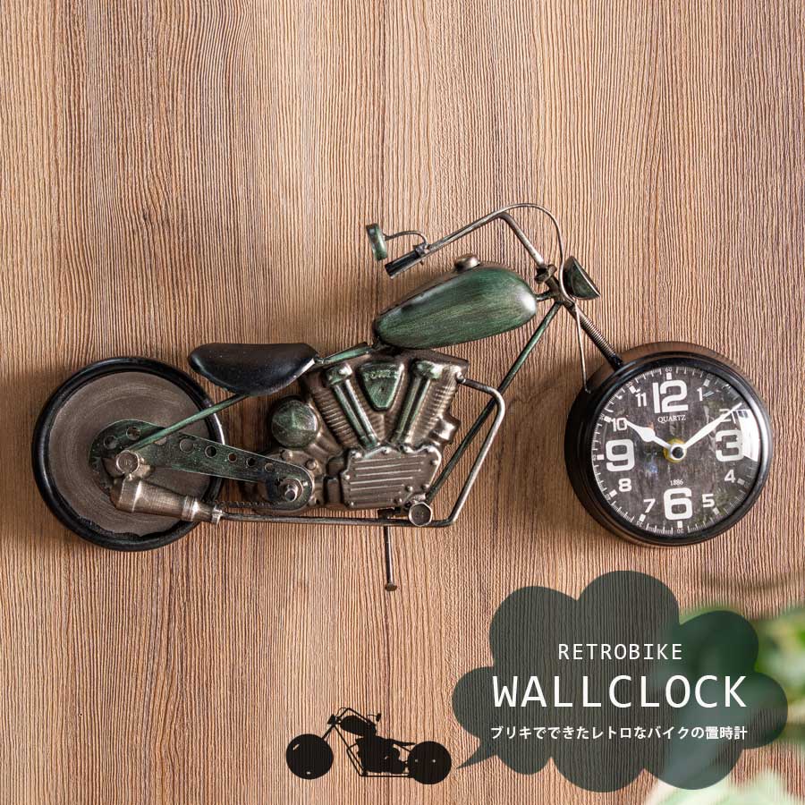 期間中ポイント10倍 時計 ブリキ製 バイク アメリカン おしゃれ アナログ レトロバイク風 小さい コンパクト 壁掛け時計 置き時計 ハーレー風 プレゼント 生活雑貨 アメリカン雑貨 ガレージに