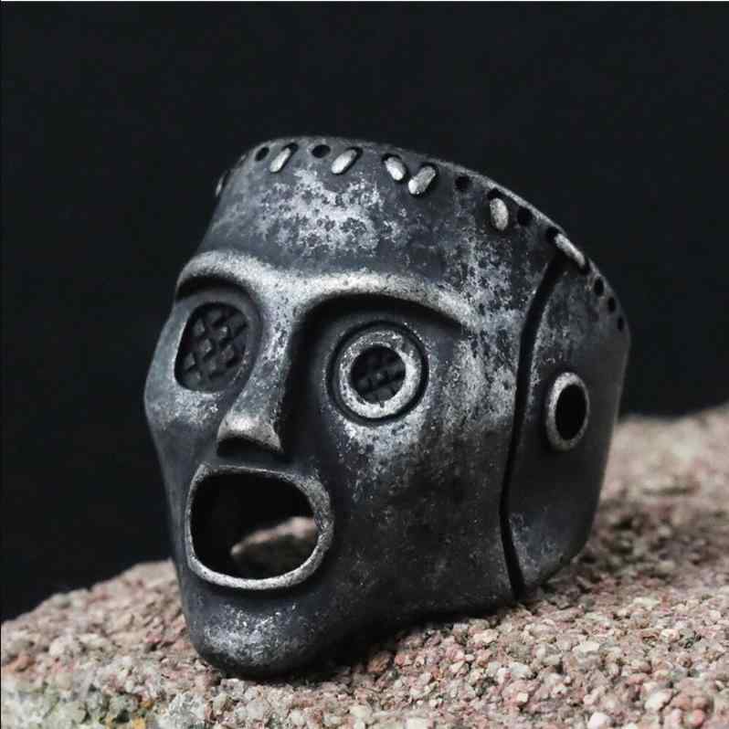 指輪 メンズ レトロロボット スカル パンクスタイル 個性的なデザイン 存在感のある アンティーク調 合金製 アンティークシルバー ファッションアクセサリー(x2)