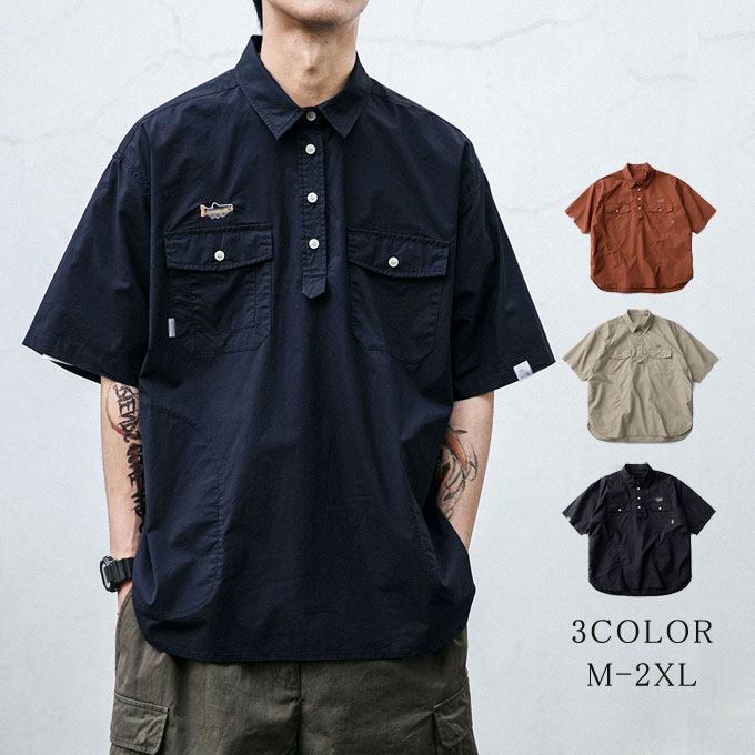 ワークシャツ メンズ 半袖シャツ トップス ポケット付き アウトドア おしゃれ 大きいサイズ ゆったり カジュアル 通勤 通学 かっこいい メンズファッション レトロ 春夏 送料無料