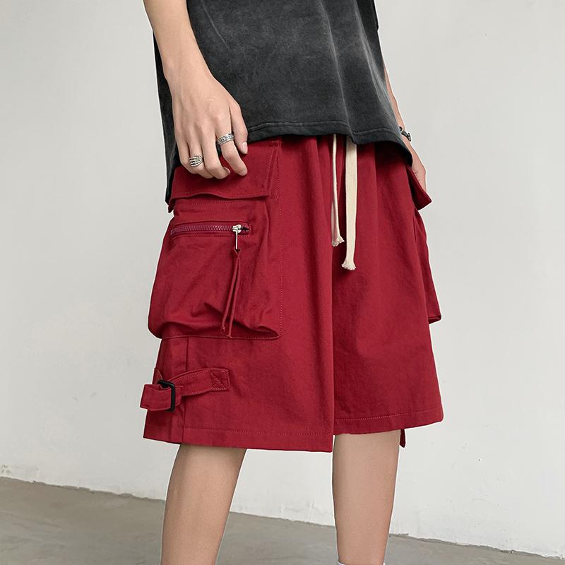 ハーフパンツ メンズ 春夏 アメリカン レトロ おしゃれ カジュアル ゆったり カーゴ ポケット ストレート ショート 大きいサイズ 黒 赤