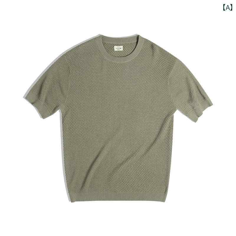 メンズ トップス アメリカン ライト 大人 レトロ 立体 パイナップル 柄 ニット T シャツ 五分袖 ドレープ 半袖 カミソリ パーティー 春夏