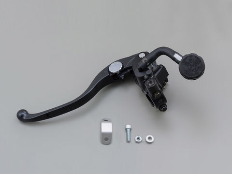 【サイズ】 φ19 【カラー】 本体色:ブラック/レバー:ブラック ピストンを縦型にすることでレバーレシオを大きくとり油圧レシオを小さく設定することで入力ロスの低減。クラッチのコントロール性を向上させました。 ストリート用として必要なクラッチスイッチ(平端子2極タイプ)標準装備。レバーアジャストは5段階調整可能。アルミタンクステー付属。クランプホルダーはミラー穴有り(M10×P1.25正ネジ付属)。ハンドル外径φ22.2専用。 ●φ19は横型マスター14mmと互換性があります。※他サイズへの使用は不可。 ●レバーアジャストは5段階調整可能。 ●安心のブレーキスイッチ、リザーバータンク、アルミタンクステー付。 ●バンジョーボルト(M10×P1.25)は別売り。 注意事項 ●クラッチホースの取り出しはクラッチレバー下部と接触しない形状の物をご使用ください ●バンジョーボルト取付位置が下側のため、クラッチホースの交換が必要になる場合があります。 ●本体寸法図を参考に、十分な取付スペースが確保できるか必ずご確認ください。 ●GSX-1300Rハヤブサ('99〜'08)、バンディット1250S('07〜)などはハンドルを切った際にマスターが車体の一部(カウルなど)に接触するため取付不可。 ※スクーター等の左側ブレーキマスターシリンダーとしては使用