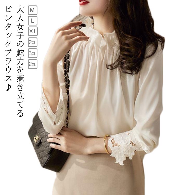 刺繡 フリル襟 シャツ セレモニー タック トップス 長袖 ハイネック フォーマル おしゃれ 送料無料 ギャザー スタンドカラー ボリューム レディース キレイめ オフィス 春 夏 秋 大人可愛い キレイめ 通勤 オフィス ブラウス