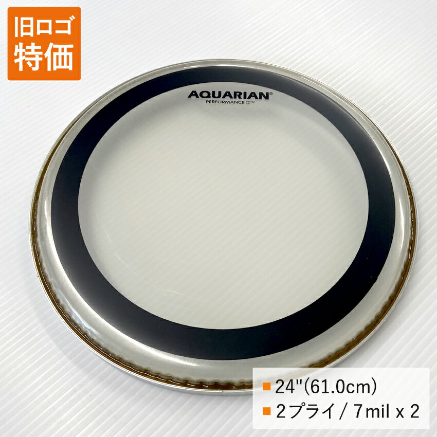 バスドラ バスドラム 化粧箱無し■ドラムヘッド PF24-Q 24インチサイズ 2プライ・クリアヘッド AQUARIAN REMO(レモ)、ヤマハよりチューニングの幅が広い アクエリアン